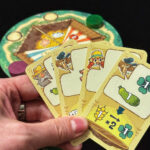 Erklärt man das Spiel in aller Kürze, vermittelt man vermutlich ein falsches Bild. Dadurch wird das Spiel sicherlich unterschätzt. Im Kern geht es darum, dass man Karten und Feldfrüchte hin und her tauscht, um Aufträge zu erfüllen. das kennt man natürlich von vielen anderen Spielen und dieses Element alleine wäre auch bestimmt nicht so reizvoll. Allerdings fokussiert sich das Spiel tatsächlich auf das Erfüllen dieser Aufträge. Abhängig von der Spieleranzahl hat jeder Spieler einen Stapel von Karten (bei 2 Spielern beispielsweise 20 Karten) vor sich liegen. Ziel ist es, diese Aufträge als erstes zu erfüllen. Wer es schafft, alle seine Aufträge zu erledigen, gewinnt das Spiel. „Formidabel!“ ist also ein astreines Wettrennen… und das war – trotz der Einfachheit – bei uns immer recht spannend. Am Anfang zieht jeder Spieler drei Karten von seinem Stapel. In der Tischmitte liegt noch ein Markt aus fünf Karten aus, die man in seinem Zug ebenso erfüllen kann. Aber wieso sollte man Karten vom Markt erfüllen, wenn man doch seine eigenen Aufträge loswerden will?… ganz einfach: weil es meist nicht anders geht. Oft muss man den Umweg über die Marktauslage nehmen, um bei seinen Aufträgen vorwärts zu kommen. Es gibt einfache Tauschgeschäfte, wie Tomaten gegen Gurken, oder sowas in der Art, aber auch Karten, bei denen man andere Karten tauscht, oder Karten vom Markt unter seinen Stapel legt… und und und. Erfüllte Aufträge, ob eigene Karten oder Karten vom Markt, werden umgedreht auf einen eigenen Stapel gelegt, mit der Münzseite nach oben. Diese Münzen kann man im Spielverlauf für zusätzliche Aktionen nutzen: Karte ziehen, Nachschub nehmen (ohne den Marker bewegen), seinen Marker auf ein besetztes Nachschubfeld legen, zusätzliche Feldfrucht nehmen.